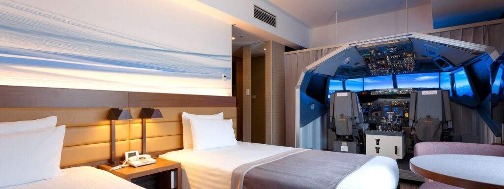 This Tokyo Airport hotel installed a Boeing 737‑800 flight simulator inside a guestroom, available for booking, complete with a 90-minute flying lesson led by an expert instructor. The experience marries aviation fandom with hotel convenience and transforms what would be ordinary lodging into an immersive flight lesson, a dream stay for aviation hobbyists.